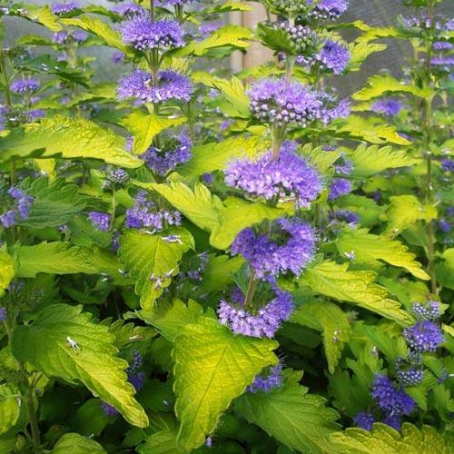 Многолетний кустарник, с пестрыми листьями и великолепными темно-синими цветами, собранными в корзинку. Высота до 60 см, ширина 50 см. Молодые листья- темно-желтые, затем становятся зелено-желтыми. Оригинален своим сочетанием глянцево-лимонных листьев и приятно голубыми соцветиями, что позволяет создавать нежную композицию. Листья имеют приятный аромат эвкалипта и пряностей. В Северных регионах зимует с укрытием. Цветет с августа по октябрь.